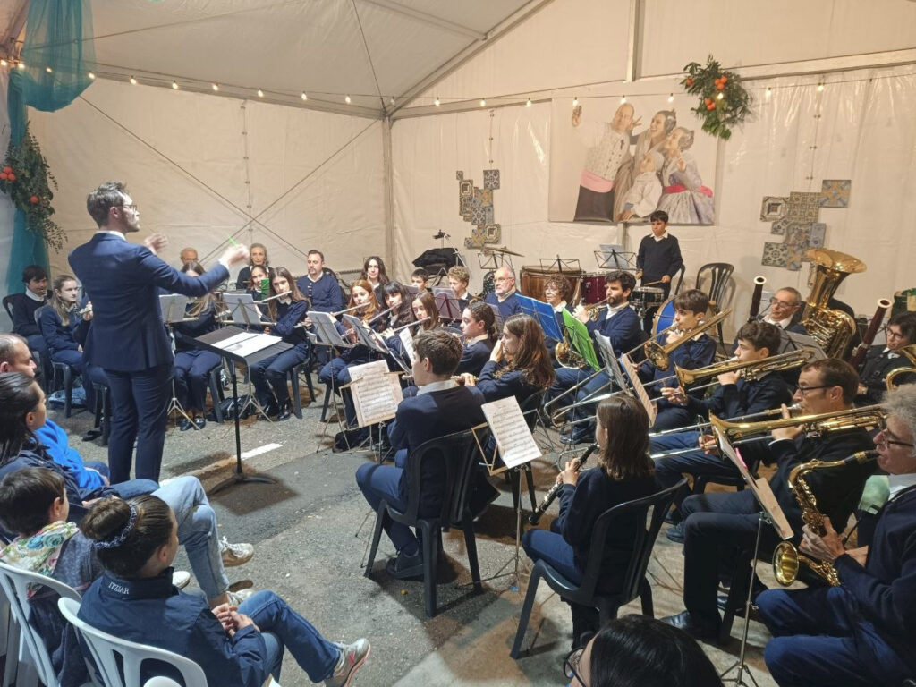 La banda també va col·laborar amb la Falla Aroca en la seua ofrena particular, reforçant la vinculació amb el teixit faller del districte.